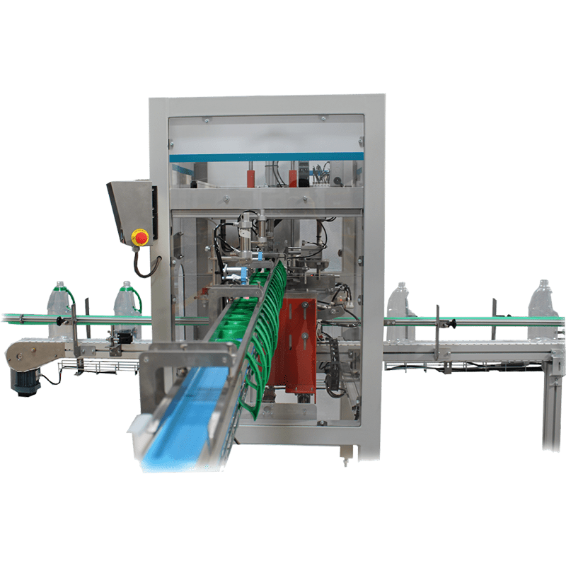 It allows using PET bottles for some beverages and liquid products which need an easy holding for pouring. It replaces the traditional HDPE systems with handle, reaching higer speeds and cost savings.